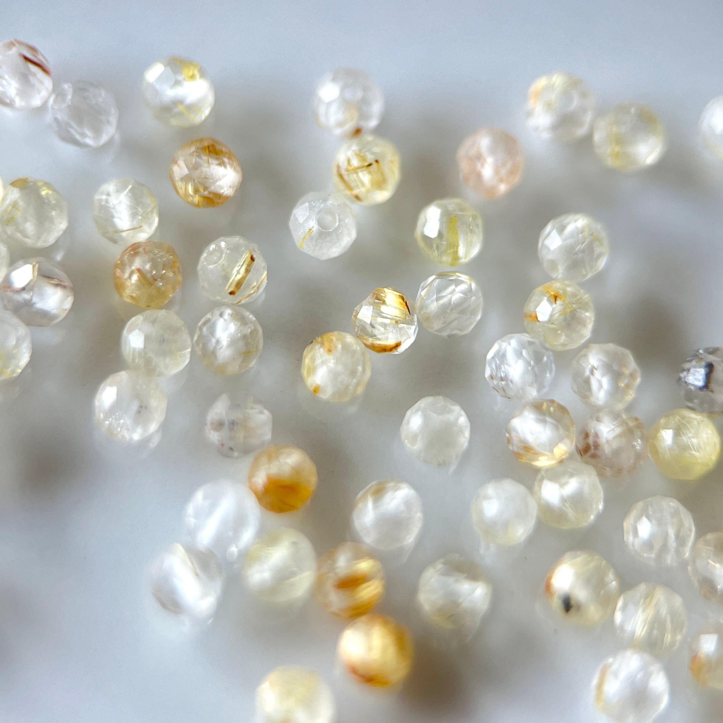 【10粒】ルチルクォーツ 2mm ラウンドカット 天然石ビーズ [M1-010]