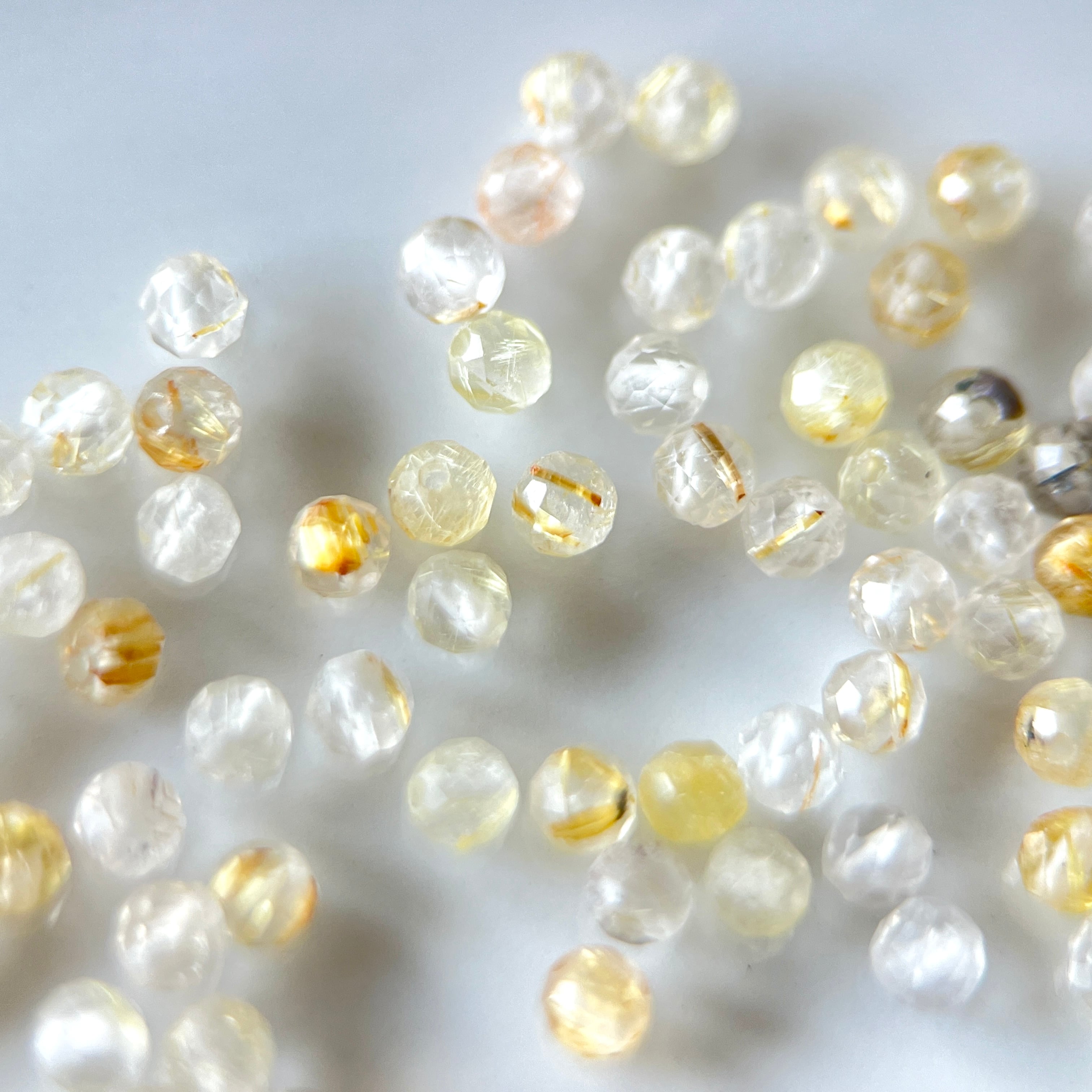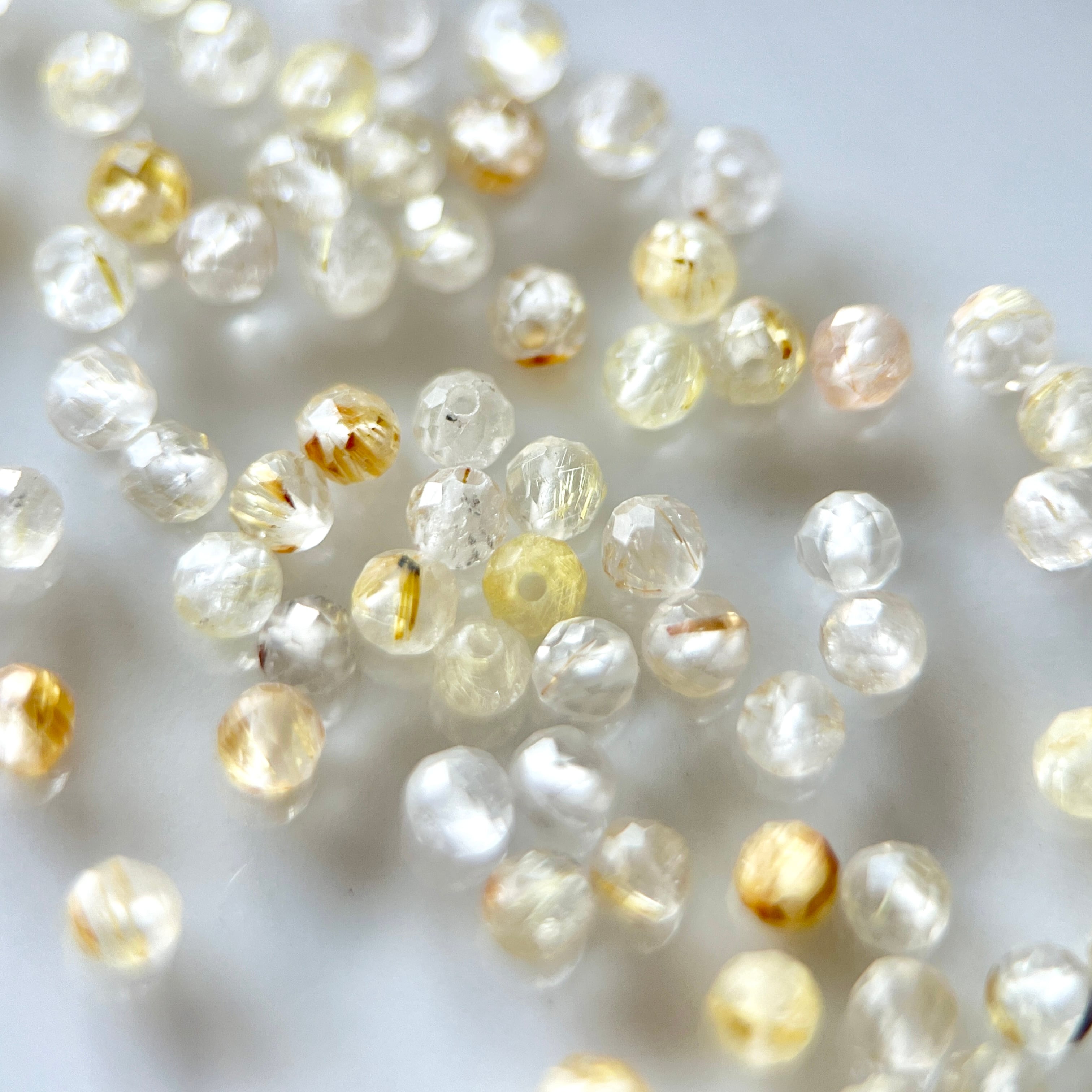 【5粒】ルチルクォーツ 2mm ラウンドカット 天然石ビーズ [M1-010]